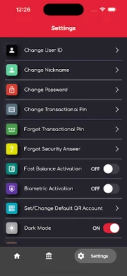 - Settings: Users can personalize the applications with various user settings such as Change Narration, Chane Account Name, Set and Change Transaction Pin Code, Change Password, Fast Balance Activation/Deactivation, etc.