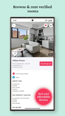 - Post your apartments, rooms & sublets within the app so matches can connect with you