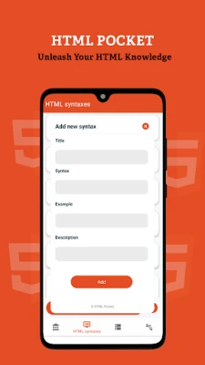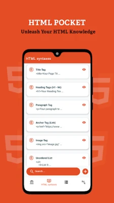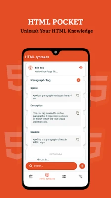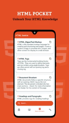 HTML Pocket is a user-friendly mobile application designed to be your on-the-go companion for learning and mastering the basics of HTML (HyperText Markup Language). Whether you're a beginner or looking for quick references, HTML Pocket provides a concise and interactive platform to understand fundamental concepts and syntaxes of HTML.