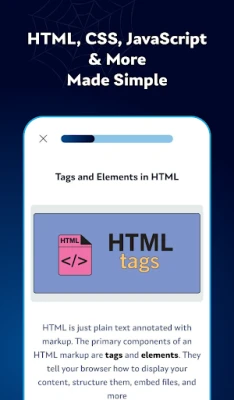 - Learn HTML: Understand tags, page layout, forms, lists, links, and semantic structure with easy-to-follow lessons.