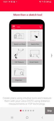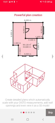 The Leica DISTO™ Plan app assists you with the vital task of documenting and visualizing your measurements. Fingers can be used to sketch a floorplan on a smartphone or tablet and corresponding measurements are easily assigned to each line of the plan. This way you can easily plan the next steps of your project.