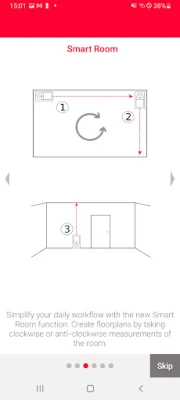 Smart Room makes it possible to create accurate floor plans simply by taking clockwise or counter-clockwise measurements of a room. Once all measurements are taken, the app automatically generates the plan.