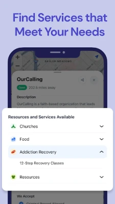 - Resource mapping: Locate essential services near you, including shelters, food pantries, affordable housing, job centers, medical clinics, and more.