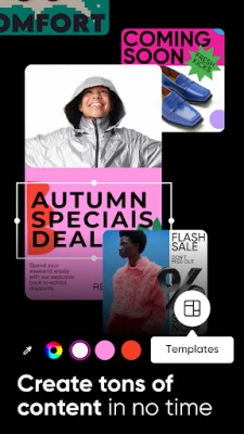 • Make templates your own with just a few taps and create stunning brand logos, social stories, business cards, and more.