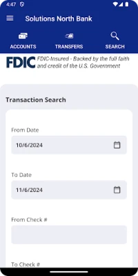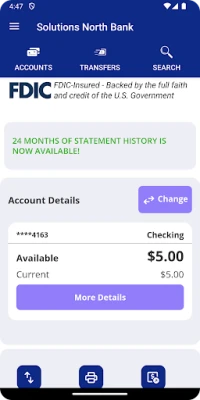 With this app you can do the following: -Check balances 24/7 -View pending transactions & transaction history -View check images & statements -Transfer funds -Send and receive secure messages -Access branch hours and locations/ATM information